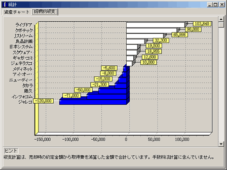 銘柄別収支では、どの銘柄で利益をあげているかが一目瞭然で分かります。 |