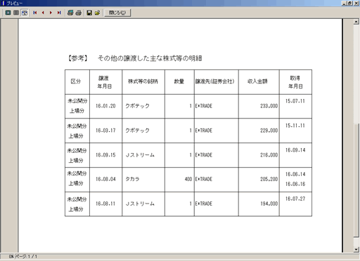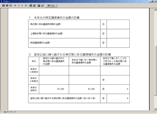 「株式等に係る譲渡所得等の金額の計算明細書(1面および2面)」、「所得税の確定申告書付表(上場株式等に係る譲渡損失の繰越用)」を印刷することができます。