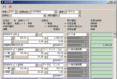 株式の売買データを登録できます。株式の売買だけでなく、入金処理なども登録できます。